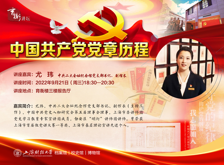 自中国共产党成立以来,共召开了 19 次党代会,制定、修订了18次党章。本次讲座将党章的发展历程按照一定的特点分为四个阶段,从党章的初创阶段(二大至六大党章)、党章的成熟阶段(七大至八大党章)、党章的曲折阶段(九大至十一大党章)和党章的全面发展阶段(十二大至十九大党章)来讲述不同时期的中共党章,并对十九大修改党章的核心要点和具体内容进行阐述。党章的发展历程也从一个侧面再现了中国共产党从幼年走向成熟的伟大征程。