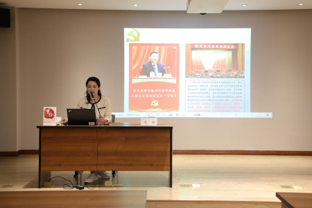 喻世红书记对尤馆长的精彩解读表示感谢。她认为,尤馆长通过丰富珍贵的史料、系统深入的研究、深入浅出的解读和真实生动的故事,让我们对什么是党章、党章的发展历程和十九大党章的核心要点和具体内容有了系统而清晰的了解,让我们从中深刻认识到党章的发展历程是我们党从稚嫩走向成熟的历史见证,是我们党在探寻民族复兴过程中心路历程的一个缩影。她提到,今年是中国共产党首部党章诞生100周年,下个月,我们将迎来党的二十大,在这个特殊的时刻,尤馆长的精彩讲座,对我们更好地学史明理、学史增信、学史崇德、学史力行,具有重要意义。希望支部全体党员在讲座后,持续强化党章学习教育,把学习党章、遵守党章作为每一位党员的必修课、应尽义务和庄严责任,并将党章的内容和要求内化于心、外化于行,做到学思践悟、知行合一。