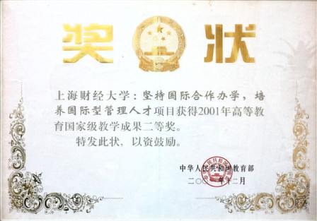 经过数年的努力,2001年上海财经大学与美国韦伯斯特大学合作举办工商管理硕士学位项目取得了丰硕成果,荣获上海市优秀教育成果一等奖和国家级教学成果二等奖,是当时国内唯一获此殊荣的中外合作 MBA项目。