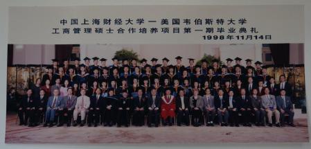 1998年,上海财经大学与美国韦伯斯特大学合作举办工商管理硕士学位项目首届学生毕业典礼
