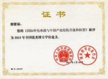 干春晖教授指导的博士研究生郑若谷的学位论文《国际外包承接与中国产业结构升级和转型》入选2013年全国百篇优秀博士学位论文。