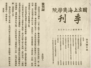 1933年3月,《国立上海商学院季刊》创刊号出世,主要发表由国立上海商学院的教师和学生所撰写、编译关于国内外经济、金融方面的文章。