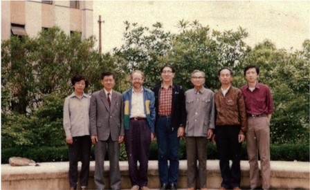 1988年市场营销专业邀请美国麻省大学教授(左三)讲授“国际营销”课程,左二为复校后贸经系首任系主任、市场营销著名学者梅汝和教授
